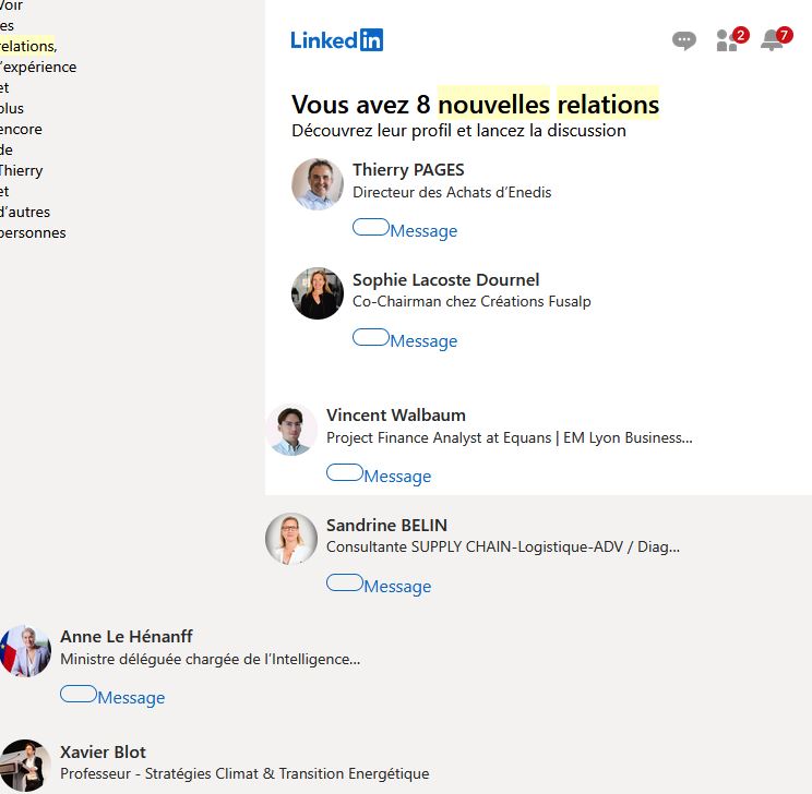 Et en attendant, merci aux 8 nouvelles relations du jour, et aux 14 des 2 derniers jours, merci au jeune Vincent qui suivra les traces de son père, merci à Sophie, pour son intervention à GO Entrepreneur, et bravo pour son parcours, qui n’est pas facile quand on porte un nom aussi célèbre et que l’on a besoin de se faire un prénom, ou encore merci madame la Ministre…